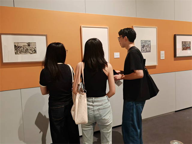 与正在闵行校区文博楼展出的“刀笔峥嵘——纪念中国人民抗日战争暨世界反法西斯战争胜利80周年版画特展”呼应,“刀笔生辉——木刻版画主题体验营”则通过展览导赏与制作体验两大环节,带领大家穿越峥嵘岁月,体验版画艺术的独特魅力。在专业老师指导下,参与者亲身体验油墨滚涂、摩擦拓印,亲手印制一幅属于自己的版画作品,感悟版画艺术的薪火相传。