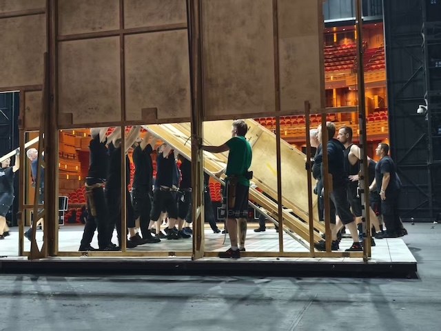 以往,国内上演歌剧鲜少会出现“每日翻台”的场景,对标巴伐利亚国家歌剧院一天一部歌剧的节奏,访沪之行歌剧《漂泊的荷兰人》、歌剧《奥赛罗》音乐会版、管弦乐团音乐会三台演出穿插上演,使每日“翻台”成为常态。舞台上,每一次布景更换都是与时间赛跑:从一部大型歌剧到另一部制作的转换,仅用极短时间完成,不容有失。上海大剧院总经理张笑丁坦言,就技术保障难度与工作强度而言,此次歌剧节堪称“大剧院开幕以来最具挑战的项目之一”。尤其是《漂泊的荷兰人》,其在上海的组装堪称舞台奇迹——7个集装箱承载全部布景,经过70小时不间断搭建,由35名中德工作人员通力协作完成,实现了高密度换景的精妙呈现。三幕布景的换景最短仅用1分20秒,刷新了上海大剧院大型歌剧的换景纪录。每一次精准操作、每一次团队配合,都凝结着幕后工作人员的汗水与专业精神,也让观众在光影与音乐的交织中,切身感受到这份不为人知的付出与奇迹般的呈现。