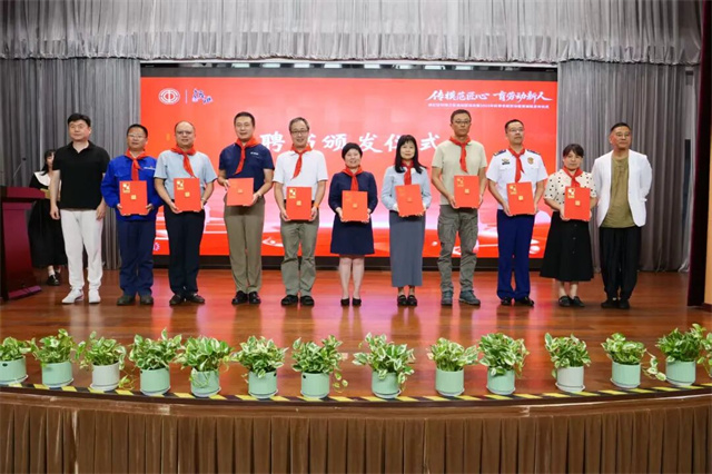 10位劳模工匠代表接过“劳动教育导师”聘书