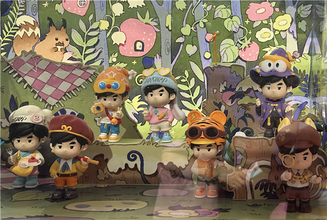 记者在明珠生活美学咖啡馆看到,不少粉丝拍照“周同学”玩偶公仔,或在挑选主题盲盒。“我最想要粉色的‘周同学’公仔,因为很可爱。”龚同学抽中了“周同学”蓝色的“馋嘴小猫”公仔,有些遗憾地表示。
