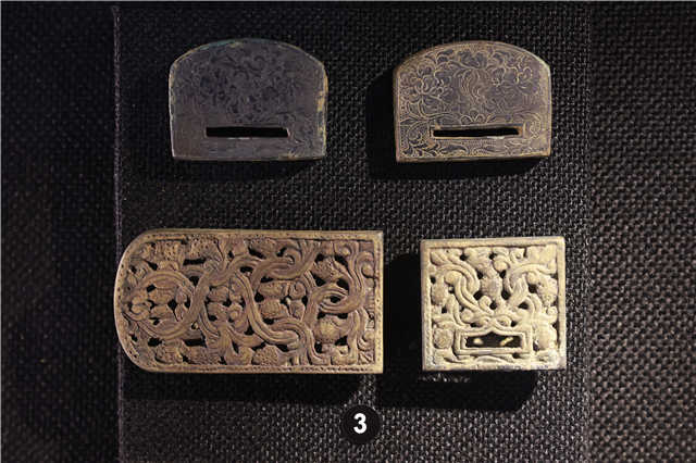 在一款“胡人吹笛玉带銙”的展品背后,正是唐代带具“胡风汉韵”的典型题材。原来,在唐代,很多西域胡人来经商、当乐师,胡人乐舞成了流行文化。这种纹饰刻在代表身份的玉带銙上,说明“胡风”不仅被接受,还成了中原统治阶层审美的一部分。