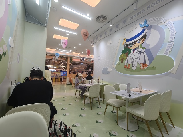 下午时分,在新世界柯南主题餐厅里,一对母女落座,13岁的女孩带着一堆“谷子”开始点餐,上菜后,妈妈林小姐忙着为女儿和心爱的“小兰”(柯南中的角色)还有主题菜品合影。记者在调查时发现,“谷圈”的主要客群中小学生占比最高。针对一些低龄客群,大多商家有着不可言说的困与惑。