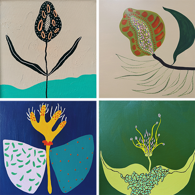 王帅并非观念先行的创作者。“我画身体的感受、肺部的呼吸、乳腺的增生,甚至能感知到它们的流动、细胞的分裂,它们的友好与仇视。”创作“野花”系列时,她体会着如此细腻的感知。每一次提笔,都是对身体状况和生活境遇的直观“照搬”,待作品完成,才会复盘思考,建立理性的框架。