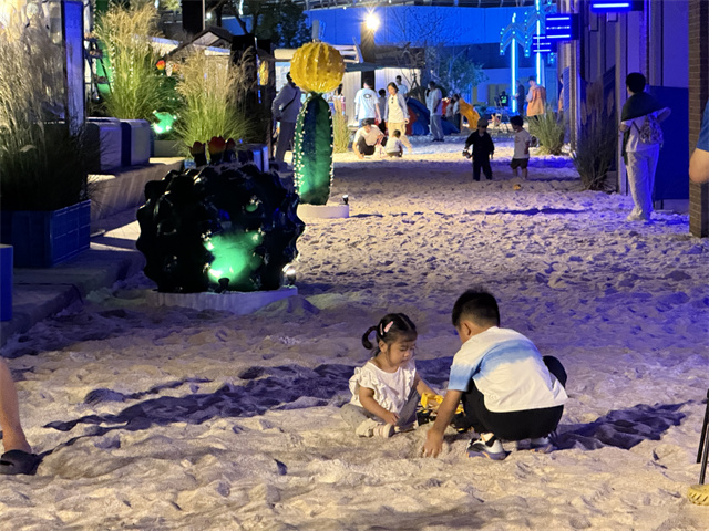 风格迥异的《蓝洞与冰洞》装置将人带入“沐光秘境”和“能量蓝海”两座双生自然秘境。以“地球之眼”深蓝洞的深邃蓝、北极冰洞的纯净白为灵感,以“自然造自然”创作哲学,用帷幔、织网和灯光装置这些随处可见的简约素材,通过巧妙设计在城市构建可触摸的自然秘境。在两座秘境中,既可以沐浴在白色的治愈之光中放空自我,也可以漫步于“深海峡谷”与“海葵”和鱼儿们互动。还可以选择“逛吃逛吃”尽享近30家品牌商户带来的优质产品,更有可以吃的“星星人”。