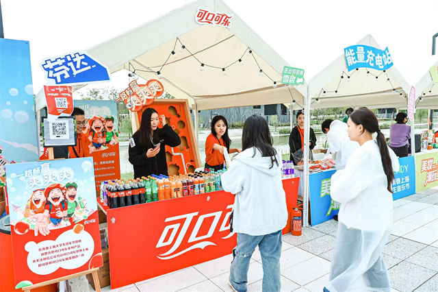 当日下午,美妆潮玩生活派对活动就已率先聚拢人气,并一直持续至与演出同步进行。这场市集藏着穿越千年的“时辰奇遇记”,以“未、申、酉、戌”4个古韵时辰为线索,串联美妆颜究所、潮玩造物局、美食补给站、露营松弛区四大区块,结合趣味任务与终极挑战,打造沉浸式“闯关+解压”双重体验。紫燕百味鸡IP“胖燕”以其“紫门首席美食官”萌趣形象亮相,成为现场人气焦点,将其“快乐美味”的品牌理念融入青春氛围。可口可乐互动区域集中了各种打卡小游戏,“一路畅赢”就可以获得品牌周边礼物,“喝得爽、赢得爽、玩得爽”,三重享受为音乐派对加满畅爽能量。上海科学技术职业学院依托上海市院校创业指导站开展科创文创融汇教育活动,苜艺千蓿、金翠云冠等学生项目集AI设计、数字媒体于一体,展现学生将前沿科技转化为文化创意的实践能力与创业潜力。