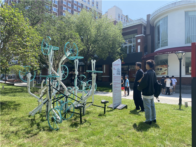 有感于共享单车频频报废,师生携手将城市垃圾变成艺术装置