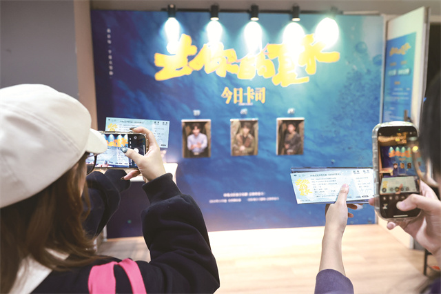 观众在演出海报前拍照。