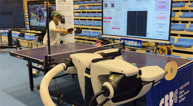 和AI对打乒乓难吗?人工智能还能教学生武术套路并打分?这个周末,上海体育大学举办了“上体体育大模型2.0”发布会暨首届上海体育人工智能创新大赛冠军争夺赛,活动现场集中展示了乒乓球机器人、篮球智能测评系统、武术打分系统等人工智能赋能体育事业的最新科技产品,有不少老师和学生在现场体验。