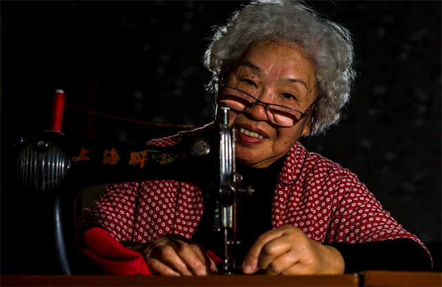 2019年,上海丽园路上的一个公房里,85岁的时尚奶奶孙兰英搬出了家里的老古董——缝纫机,戴上红边眼镜。那天,她成了柯罗诺斯项目的第一位“模特”。快门“咔嚓”一下,在笑意盈盈的孙奶奶的银发上打出了光。几天后,居居把照片送到老人手里,孙奶奶用上海话连说“老灵额”。