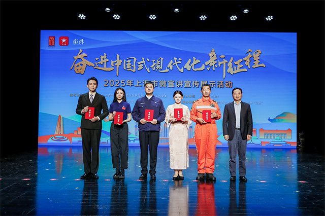 讲好新时代奋进故事,传递中国式现代化的上海声音。10月28日下午,“奋进中国式现代化新征程”2025年上海市微宣讲宣传展示活动终评在宛平剧院小剧场圆满落幕。来自全市各行各业的9位个人选手和11组团体选手同台竞技,经过专家评委现场评分与观众票选,活动各大奖项获奖名单出炉。