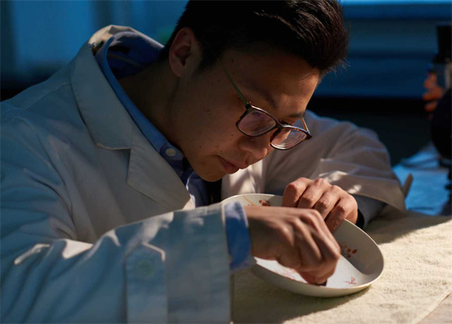 在无数修复经历中,张力程这位“文物医生”最得意的一次,是把一件断成两半的青花瓷“接回生命”。他专注于每一个细节,将心、眼、手结合起来,进入一种“心流”的状态,不疾不徐,水到渠成。张力程说:“那不是妙手偶得,而是系统学习后的技术呈现。”