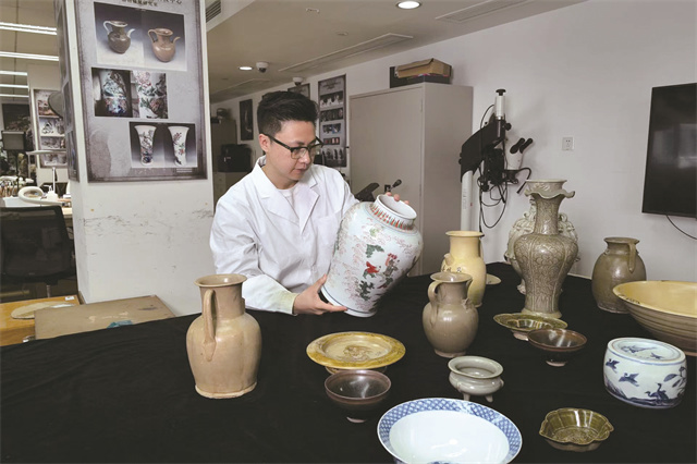 “古陶瓷修复技艺,从广义上说是一门历史非常悠久的技艺。”张力程介绍。目前,上海博物馆共有2项国家级非遗代表性项目、9项市级非遗代表性项目,其中古陶瓷修复技艺于2021年入选第五批国家级非遗代表性项目名录。它主要承担的任务是陶瓷文物的保护与修复,并服务于收藏、展览和研究工作,这也凸显了其重要性。