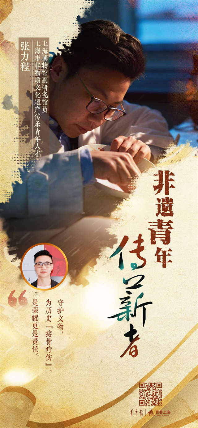 “我觉得上海博物馆的非遗代表性传承人如果有一个标签的话,那就是‘文物的守护者’。”聊到非遗代表性传承人的使命,张力程诚恳地说。第五代传承人要做的是在继承传统技艺的基础上,顺应时代的变化,要将这门技艺向大众传播。