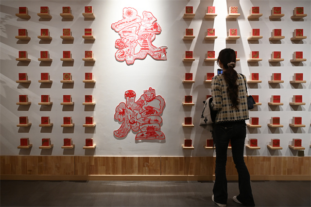 游客在参观敦煌文博会上的展览。