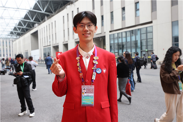 上大机电工程与自动化学院2024级研究生白晨晖曾经作为世界互联网大会“小梧桐”,驻守桐乡火车站,负责外宾接待与引导。从学习多国语言问候到细致解答与行李协助,他用真诚与微笑搭起跨越语言的桥梁。担任浙江省“互联网+”创新创业大赛志愿者负责人时,他带领团队梳理岗位、优化培训,在老师悉心指导下圆满完成任务,也深刻体会到志愿者并非独行,而是团队与师长携手同行的温暖旅程。他说,在进博会上,自己也将以最饱满的热情、最细致的服务,展示上大学子的青春风采。