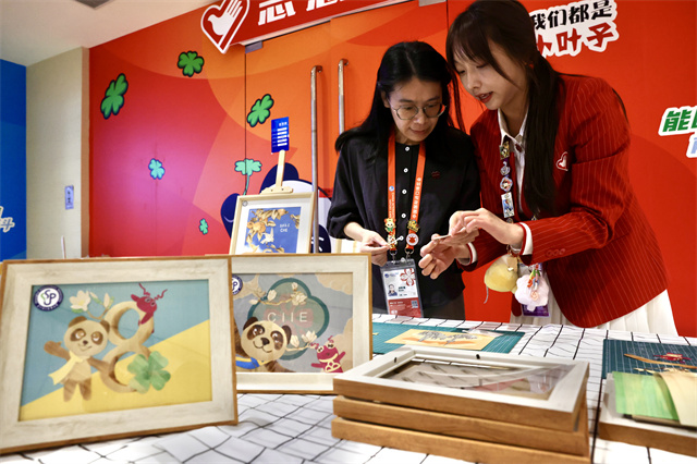 “非常荣幸能带着这门古老技艺在进博舞台上焕发新生,既藏着传统匠心,也映着时代温度。欢迎大家亲手体验,感受非遗的独特魅力!”带着记者现场完成拼贴的上海第二工业大学“小叶子”宋彦凝热情地说。