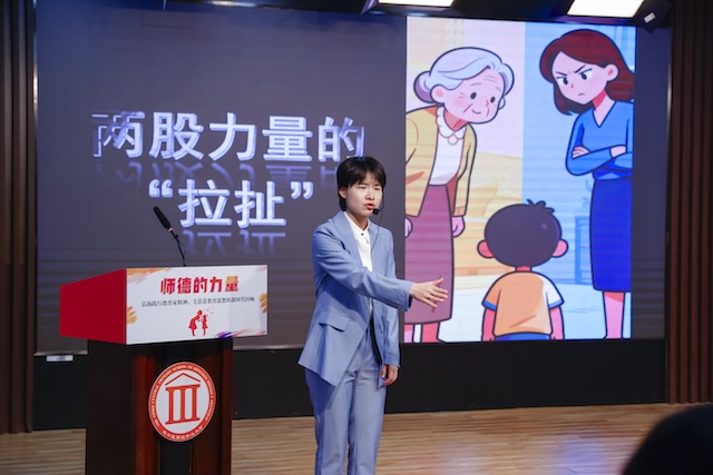 现场,多位青年教师讲述了身边的育人故事。虹口三中心小学王诗斐老师班上有个“玻璃心”小朋友,玩游戏输了他要掉眼泪,老师提句建议他的眼眶也立马就红,像个易碎的杯子,让老师们又心疼又着急。经过与家长沟通,王诗斐发现,这个孩子“玻璃心”的背后是两股拉扯的力量——奶奶“全方位呵护”把他宠成“小皇帝”,遇到麻烦大人全扛;妈妈“高标准严要求”,总因小事批评他,让他觉得“自己什么都做不好”。高敏感裹着低自信,让他成了一株怕风的小苗。
