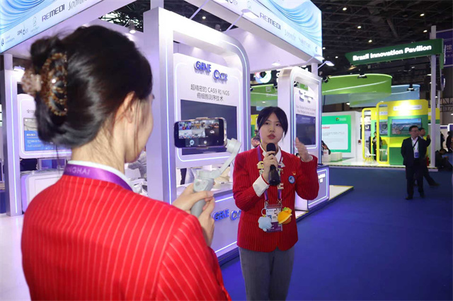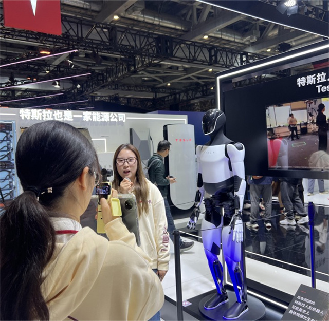 一个人就是一支团队。张嘉茜第三次穿上“小叶子”红西装,但今年多了一重身份和任务——作为学校研支团成员在进博会展馆内为对口支教学校学生直播讲课。“这个就是会飞的车——立邦飞行器,应用于低空旅游、应急救援、农业生产等场景。”支教地孩子们一句“进博会真的有会飞的汽车吗”的追问,让她将直播内容瞄准了科技装备展区:当亲眼看到飞车、行走的机器人,书本知识此刻开始具象化,牵引着孩子们的注意力。