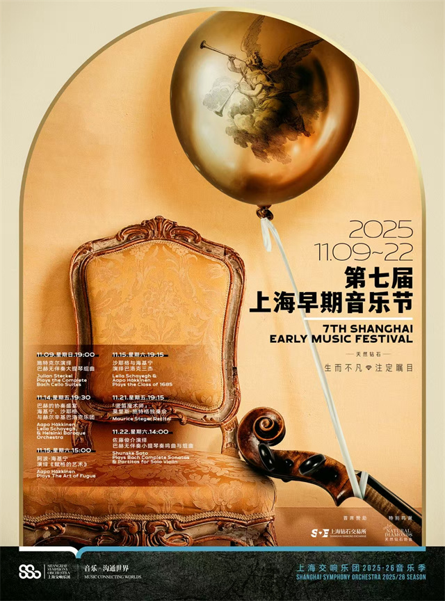 第七届上海早期音乐节以巴赫的6首《无伴奏大提琴组曲》开篇,这是德国音乐史上最早的大提琴独奏作品,通过多指按弦和各种旋律线的发展,融入了巴洛克音乐中数字低音的构思,在大提琴这种单声部乐器上构造出和声织体与对位织体的效果。独奏家尤利安·施特克尔曾获得慕尼黑ARD国际音乐比赛大奖。