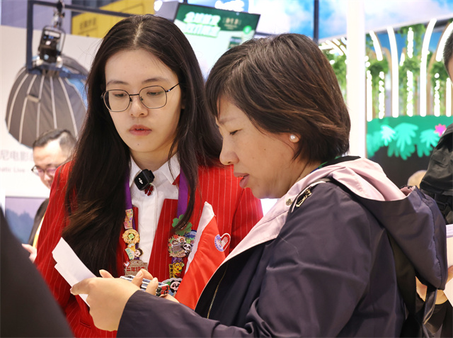 上海电子信息职业技术学院学生周颖颖和章乐妍是每天都来保障点位借机器人的志愿者之一。这是周颖颖第一次来进博会,也是她第一次穿外骨骼机器人。周颖颖是综合信息服务岗的一名“小叶子”,她的工作内容是与搭档章乐妍共同完成展馆巡检任务。对于新设备,她感到新奇酷炫,第一次穿上时,感觉到它在抬动自己的大腿,觉得很神奇。