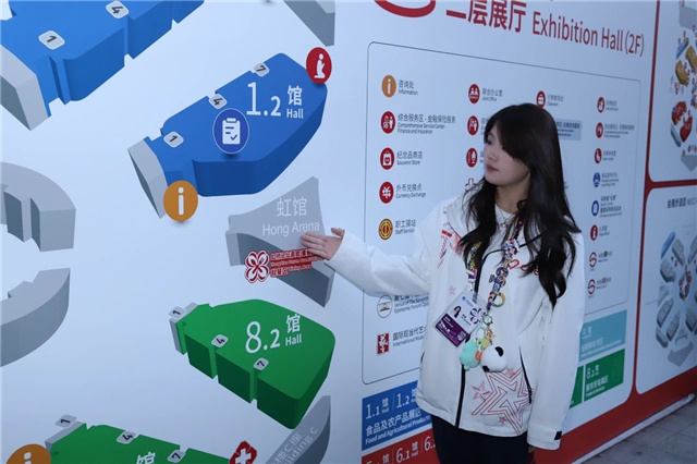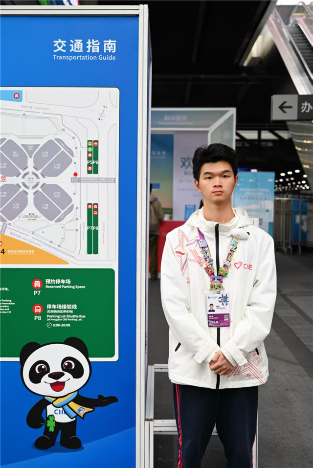 与李萌的成长轨迹相似的,是雕塑设计专业大三学生康经睿。从去年东登陆厅的方向指引,到今年0米层7.1馆与8.1馆间的机动支援,他的身份在变,但服务进博的热情始终未改。