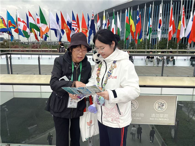 机动岗被称为“螺丝钉”岗位,没有固定服务点位,却要让整个链条运转更顺畅。作为雕塑设计专业学生,康同学习惯用“匠人思维”对待志愿服务:“就像雕琢作品需要耐心,引导观众也得注重细节——比如手势要清晰、解答要简洁,这些都是‘服务美学’的体现。”他希望用专业里的专注与细致,让每位来宾感受到进博的温度,更展现工美学子“以美育人、以艺助人”的独特风采。