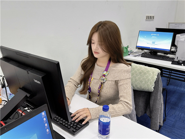 11月2日场馆正式运行后,赵悦琪的工作重心转向新闻发布厅现场保障,每场发布会前,她都会核查会场布置的准确性,全力确保发布会有序开展。同时,有30名华东师范大学志愿者被分配于进博会新闻中心支援,她与同岗位长期志愿者合作,结合各位志愿者的特长,精准完成岗位分配。
