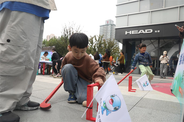 “射五毒”“滚铁环”“捶丸”“投壶”等传统游戏在这里被赋予环保新内涵——“射五毒”瞄准的是电池、塑料瓶等“环境杀手”,每射中一个目标都是一次对污染知识的解锁;“滚铁环”化身“资源循环大冒险”,孩子们争先恐后地将错放的“资源”送回正确分类处;“投壶”演变为“投木成林”,投出的是承载文化记忆的“箭矢”,落地的是象征自然生机的“树苗”,每一次投掷都是“种下希望、收获绿意”的播种过程。