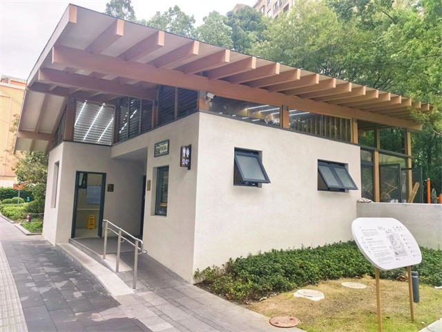 如今的徐汇公厕,早已不是单纯的功能空间,更成了点缀街景的“城市家具”。茶陵绿地公厕的外观设计与周边绿地景观相得益彰,木质元素与绿植搭配,让建筑自然融入环境。公厕内部统一设置的便民服务与文明宣传栏,以清晰美观的版面提醒市民爱护公物、文明如厕,让公共空间在满足使用需求的同时,传递着文明新风。