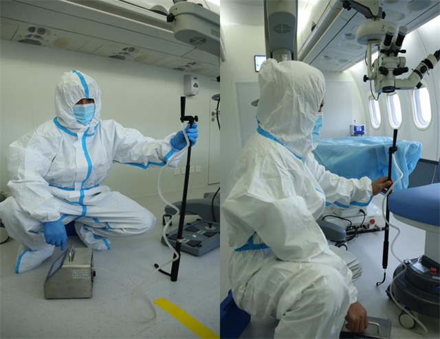 为积极响应并深入贯彻落实国家卫生健康委关于加强县医院白内障手术能力建设和飞机医院尽快实现机上手术能力的相关要求,作为C909医疗联盟副理事长单位,医院与中国商飞等有关单位进一步紧密协作,推进“五官健康C909飞机医院”I级洁净手术室的独特方案研发与工程实施。