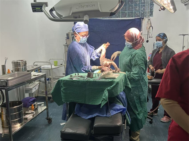 塞达特哈桑二世医院地处北非腹地,距摩洛哥首都拉巴特165公里,是该地区唯一公立医院,也是我国援助摩洛哥的首家医院,肩负周边约70万人口医疗保障重任。当地生育率居高不下,医院产科年均分娩量近6000人次,分娩相关手术成为中国援摩医疗队员核心工作,连轴转更是王珏的工作常态。