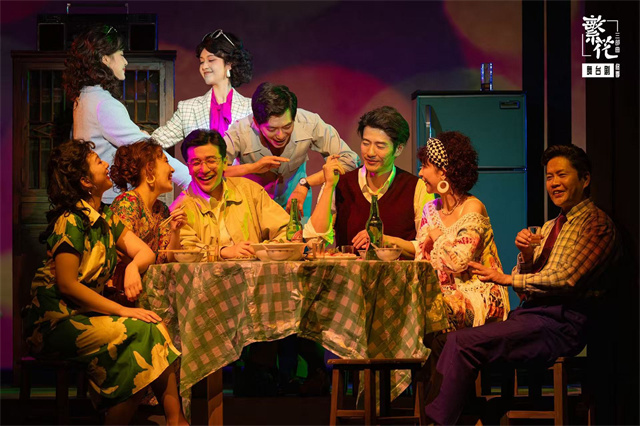 第一季的创作,马俊丰将核心定为“流动的盛宴”,聚焦时间的流转与生活的轮回。书中描写的吃饭、相聚、别离等日常场景,藏着人生的起起落落,如何在舞台上呈现这种时光流动感?创作团队设计了转台——以圆形转台搭建“人生圆盘”,演员在转台上演绎吃饭、聊天、工作等日常,转台缓缓转动,象征着时间不停流逝,人物在时光中相遇、相伴又分离。