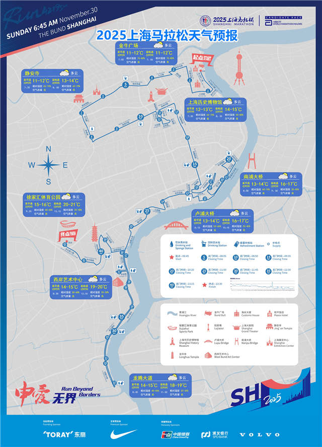 2025上海马拉松周日开跑,分时段精细化天气预报来啦!
