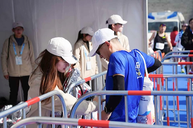 采访中,几乎没有志愿者提及“累”或“辛苦”,但从他们的讲述中,不难感受到志愿服务的高强度。李沐霏透露,由于上马与交大某门课程考试时间冲突,为不影响教学进度,学校会将考试提前到赛事前一天下午,这意味着志愿者的休息时间被进一步压缩。