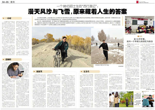 本报报道《一个00后硕士生的“西行漫记”》当事人获评交大学生年度人物:理想就在祖国和人民最需要的地方