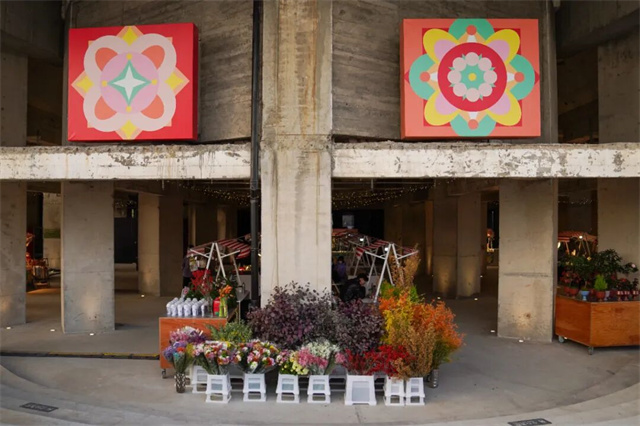 与户外冰场的动感活力相得益彰,南区大筒仓下的万花筒仓市集则为市民提供了慢享时光的休闲空间。作为对工业遗存的创新利用,这场以“万花筒”为灵感的主题市集,汇集了鲜花绿植、花艺文创、宠物用品等20余个特色摊位,不设固定动线的开放式布局,让市民可以随心漫步,邂逅惊喜。