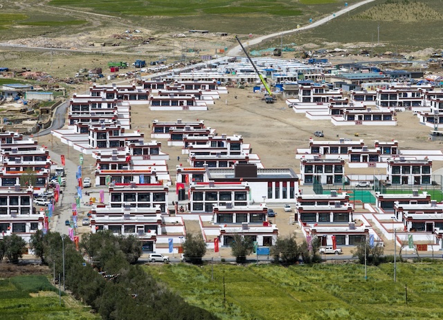 这是2025年8月14日拍摄的新建成的西藏日喀则市定日县森嘎村(无人机照片)。新华社记者 姜帆 摄