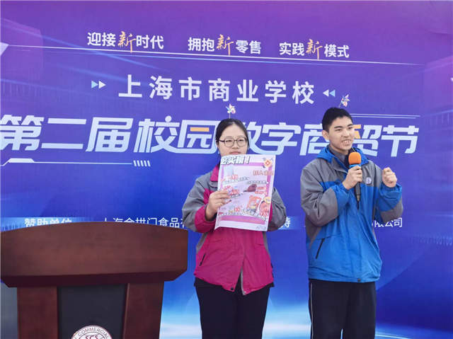 “数字商贸节是我们学校财经商贸专业群的一个综合实践活动,去年第一届全部做的是直播,今年在去年的基础上增加了线下展示环节,以‘线上数字化运营+线下实体展销’模式开展。”上海市商业学校财经商贸教学部主任胡海梅说,今年学生的参与积极性非常高,去年只有6个店铺,今年原本计划开20个店铺,最终却达到了24个店铺,每个店铺参与学生的数量也比去年大幅增加。