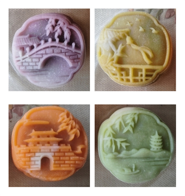 不止于内在质感的提升,团队成员更希望让崇明糕成为“可食用的风光明信片”。他们深入崇明湿地、森林公园、古刹等地采风,将“东滩鹤影”“古刹禅韵”等标志性景观,转化为四款极具设计感的造型。每一款糕点的线条、色彩层次都蕴含着地方故事,让消费者在品尝时,同步完成一次舌尖上的文化之旅,实现了从“饱腹食品”到“情感载体”的升华。