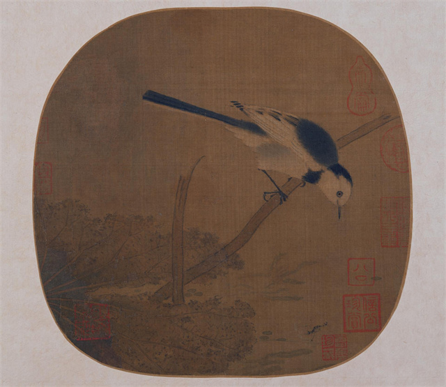 《荷塘鹡鸰图》扇页。藏于上海博物馆