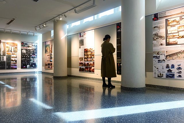 2023年投用后,设计大楼就从来没有设立过门禁。任何人都能推门入内,进来走走看看,赏一个展览,喝一杯咖啡,找一方毫无拘谨感的自由书桌。希望以建筑之美潜移默化地陶冶交大学子,更希望它成为一个打破学科以及人与人交流边界的校园厅堂。