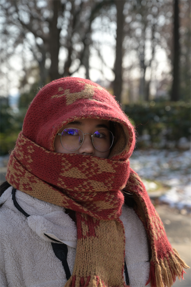 苏菡是一名在读博士生,她与打毛线的缘分始于童年。小时候长辈们围坐打毛线的场景令她印象深刻,不锈钢针架成圈织出来的毛线筒曾是她眼中的“神奇魔法”。她常蹲在旁边观察,甚至偷偷尝试过,留下织出来的小样片被妈妈收在抽屉里。但后来多年,这段时光被遗忘在岁月里。直到大一的那个冬天,她正为给朋友准备什么礼物而苦恼,学姐让她试试打条围巾,成为她真正开始编织的契机。