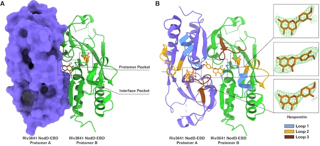 结构分析进一步揭示了特异性的根源:NodD蛋白上三个关键结构元件共同形成了一个精确的“结合口袋”,其形状和化学性质恰好能适配橙皮素这类黄酮分子,却无法有效结合其他类别的类黄酮。这从结构生物学角度完美解释了为何特定的根瘤菌只响应特定植物分泌的信号。