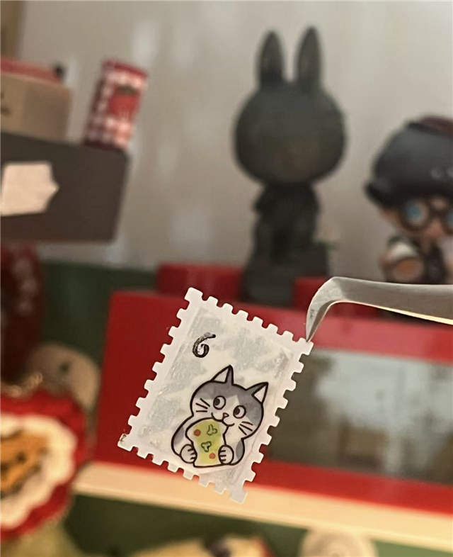 另一方面,邮票设计受限于固定尺寸,需要在构图、内容取舍以及形式细节上进行反复调整,属于一种结构相对清晰的创作过程。这类体量较小、目标明确的创作,在快节奏的日常生活中更容易被完成,也更容易带来阶段性的成就感与专注体验,使制作者在过程中获得相对稳定的心理感受,于是自制邮票成为一些年轻人确认自我表达方式的一种途径。