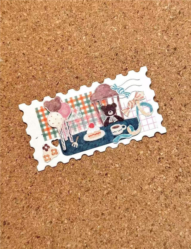 “我爸爸会收藏邮票,不算发烧友的级别,但遇到喜欢的就会收藏。”29岁的李涵回忆。而现在,李涵也开始了文化接力,收藏起了邮票,只不过全是她独家自制。以小熊甜点为主题,在她的邮票上,玩具熊戴着蝴蝶结,享受甜甜圈、蛋糕:“以邮票这种形式将插画融入我的手帐,既有复古感,也具有收藏意味。”