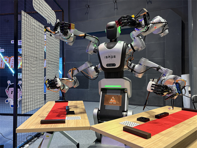 身高1.56米,体重280公斤,有着四只臂,可以轻松挥毫写春联……1月10日,2026“工赋上海”创新大会在沪落幕。大会上,一款四臂机器人吸引了不少目光。据了解,该四臂机器人可同时进行多工位精密组装与实时质检,比如一手固定、一手操作、一手检测、一手传递。