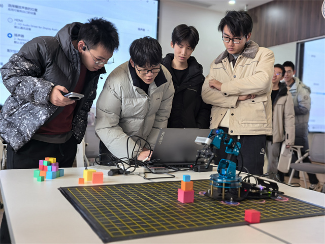抓取力度不稳、程序突然卡顿……课堂上讲过的理论难题,在实战中变得无比真实。有一组同学的机械臂因过热导致程序“罢工”,全队迅速在10分钟内分工协作:有人负责“捉虫”查代码,有人检测硬件连接,还有人想办法给设备降温……这种在真实项目中淬炼出的抗压能力与团队精神,正是学院致力培养的核心素养。