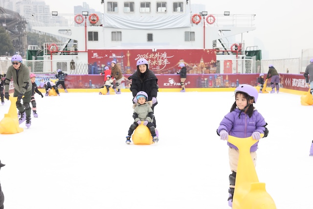 除常规开放外,冰场每周末还推出花样滑冰表演、江畔手工坊等特色活动。晚间五点到八点,北外滩更将迎来“江畔飘雪”的梦幻时刻。2月14日情人节当天,这里还将举办冰雪音乐会……一系列精心策划的活动,让冰雪体验与现代都市景观深度融合,持续提升北外滩的吸引力与美誉度。