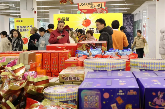 寒假前,上海师范大学香樟苑一楼大厅化身熙熙攘攘的年货集市。后勤服务中心精心筹备的“年货大集”火热开市,既是师生备齐年货的便利平台,更是一堂沉浸式的非遗文化实践课。