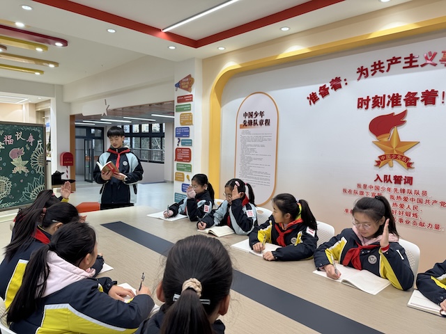“整个队室是少先队员自主设计的成果,从空间布局到细节装饰,都凝聚着队员们的智慧与心血。”学校小学部德育主任俞江担任过8年大队辅导员,他介绍说,在队室的日常运营与活动组织中,充分给予队员们自主权,从活动主题的策划、流程的安排,到人员的分工与执行,都由队员们自主完成。“这不是一个房间,是我们的‘家’,在这里,我们的想法被看见、被尊重!”一位参与设计的中队长感慨地说。